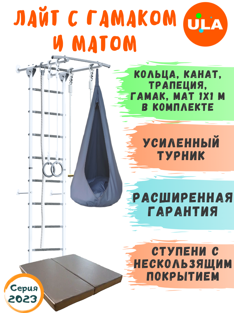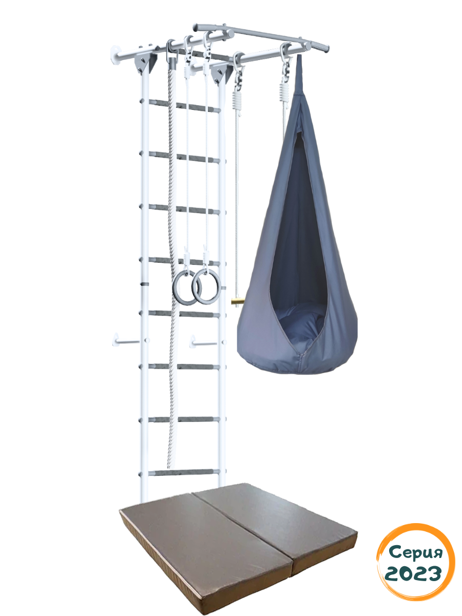 Комплект "Юный Атлет Пристенный Лайт" с матом 1х1 и гамаком, цвет Бело-серый