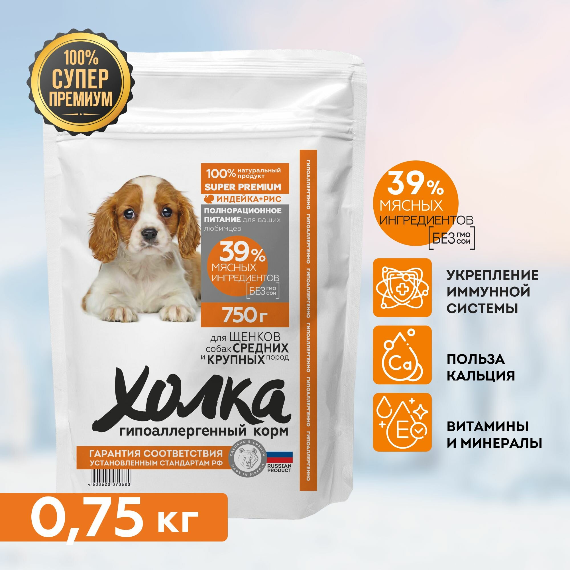 Гипоаллергенный сухой корм для щенков средних и крупных пород, индейка и рис, Холка, 750 гр