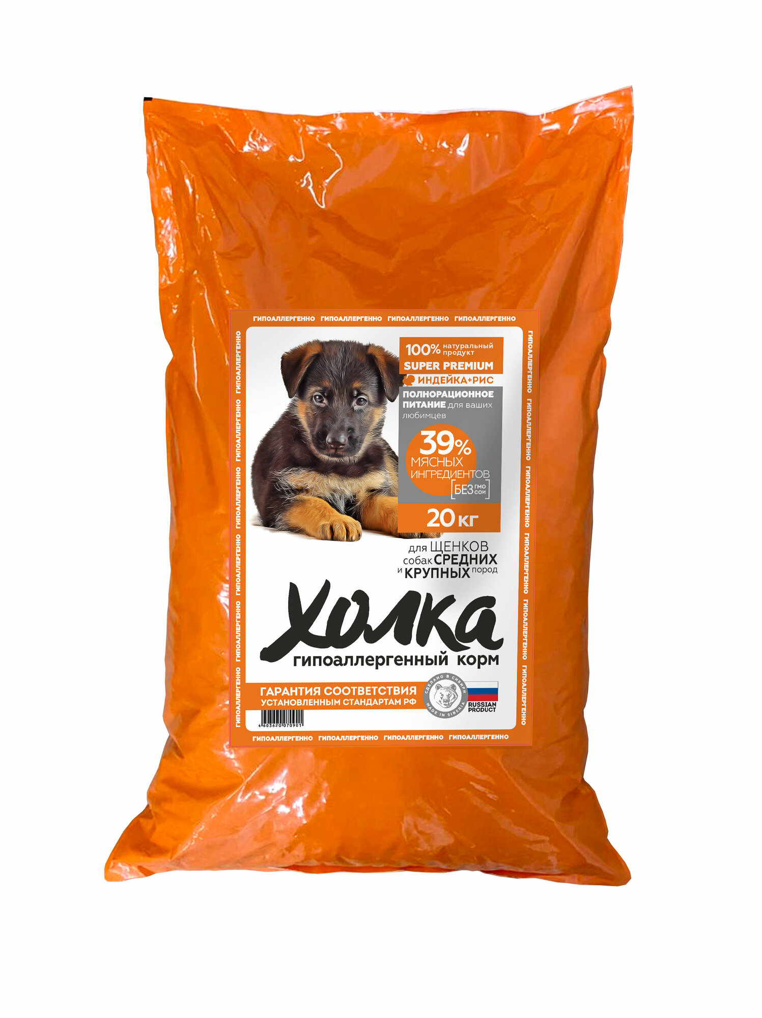 Полнорационный гипоаллергенный сухой корм "Холка" для щенков собак средних и крупных пород 20 кг.