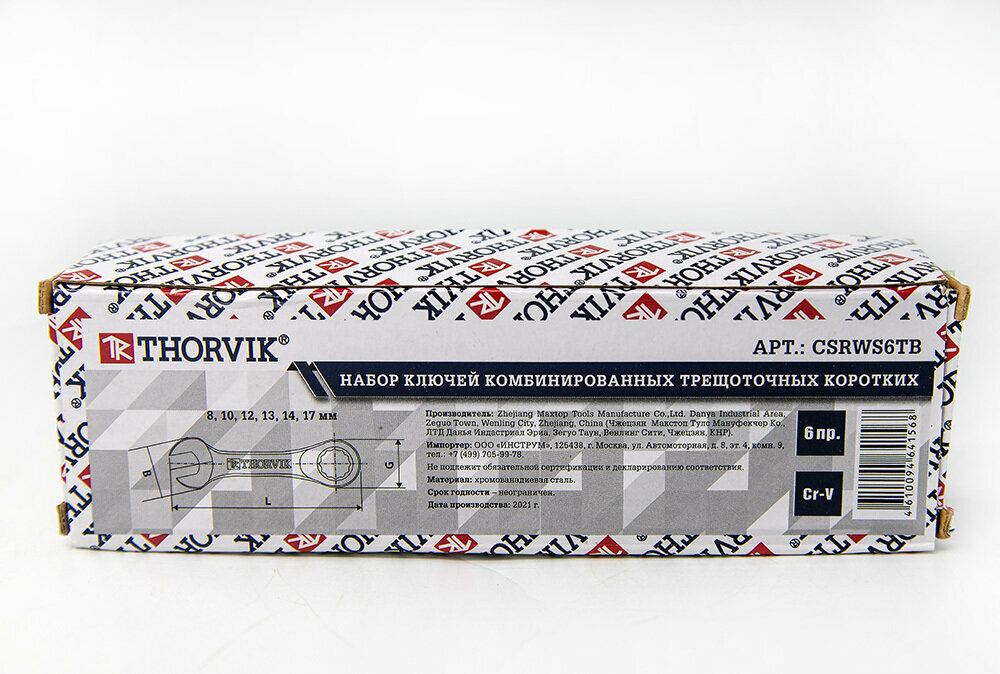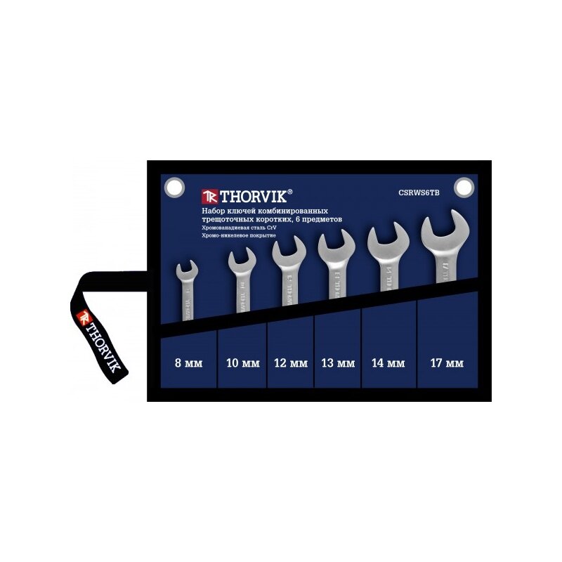 Купить Набор комбинированных ключей трещоточных коротких 8-17 мм 6 предметов Thorvik CSRWS6TB