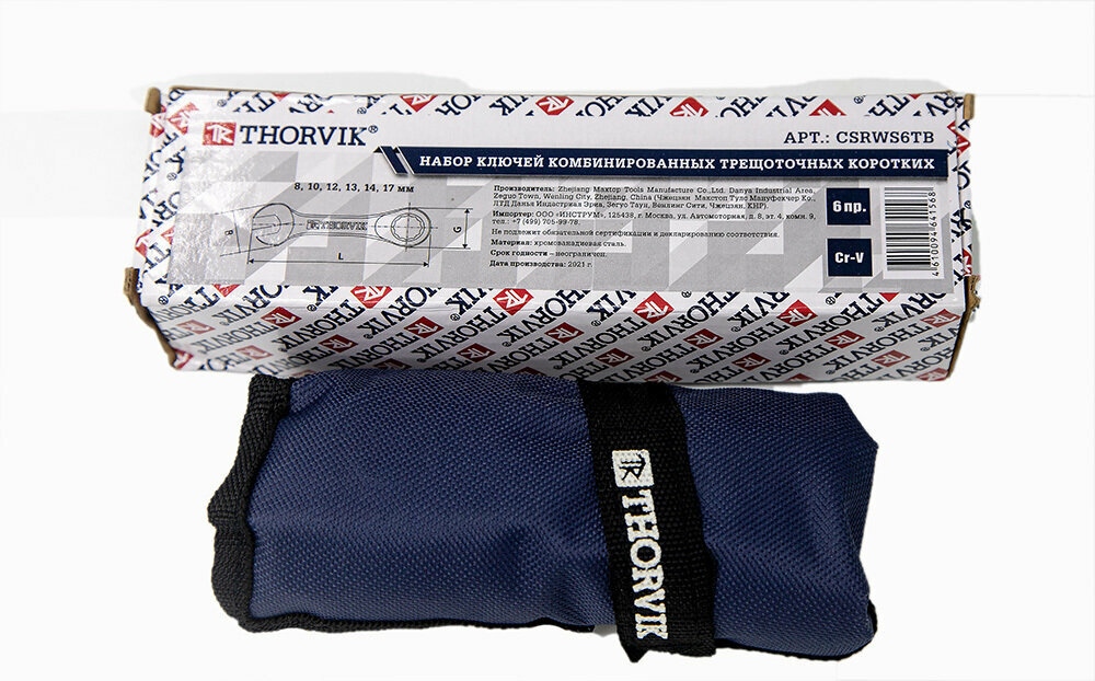 Набор ключей Thorvik 10 предметов комбинированные трещоточные в сумке, 8-24 мм, CRWS10TB