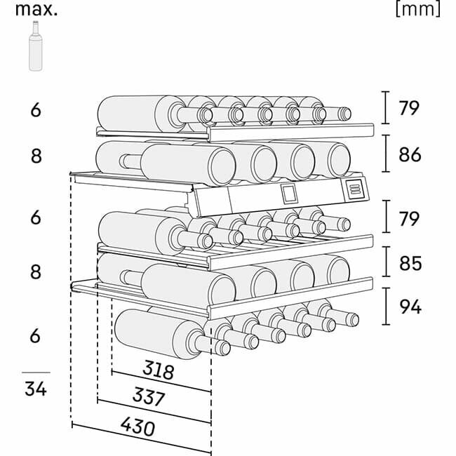 | Емкость винного шкафа, бут. | 34 |