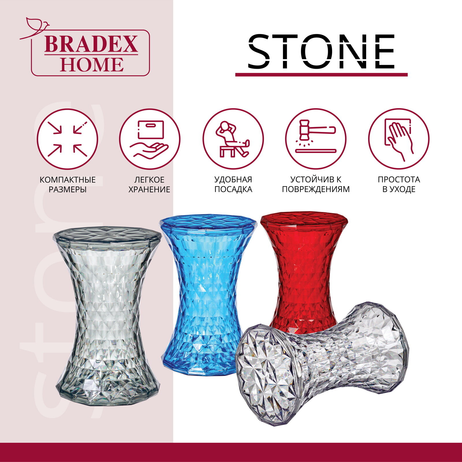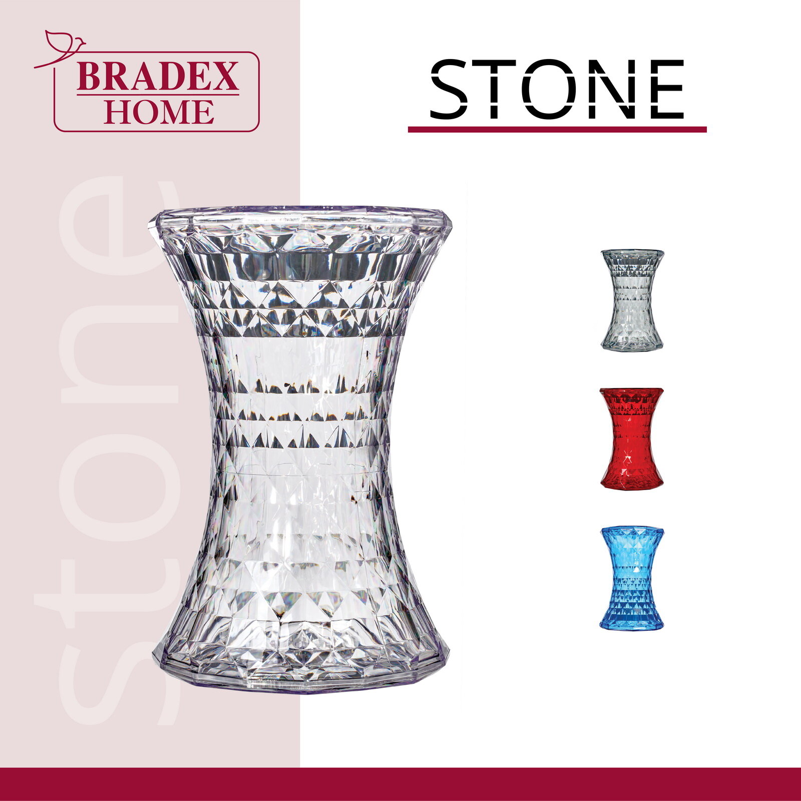 BRADEX стул-пуф stone прозрачный красный FR 0203