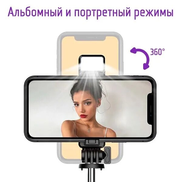 Монопод-трипод для селфи с Bluetooth пультом ISA 1LED P40S-1 Черный / Селфи палка со съемным блютуз пультом интересное: