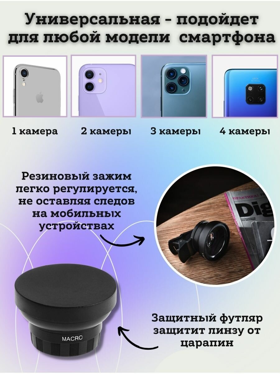 Широкоугольная макролинза объектив для телефона, 2 в 1 интересное: