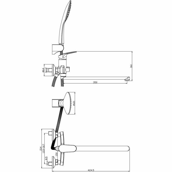 | Комплектация | Смеситель / шланг 1,5 м / настенное поворотное крепление для лейки / 3-функциональная лейка / присоединительная группа для вертикального крепления |