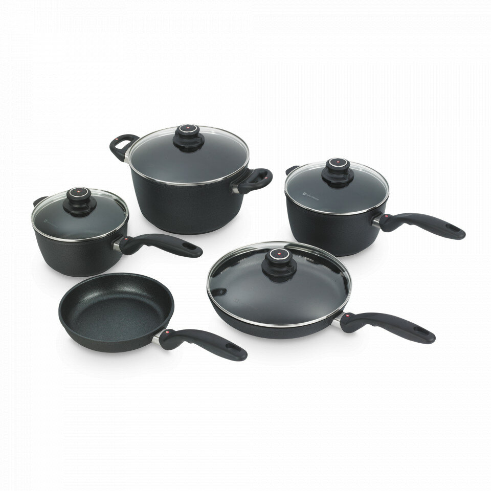 Набор алюминиевой посуды с алмазным покрытием из кастрюли, ковша и 2-х сковород с крышками и сотейника XD Classic+, черный, серия XD Classic+, Swiss Diamond, XD SET609