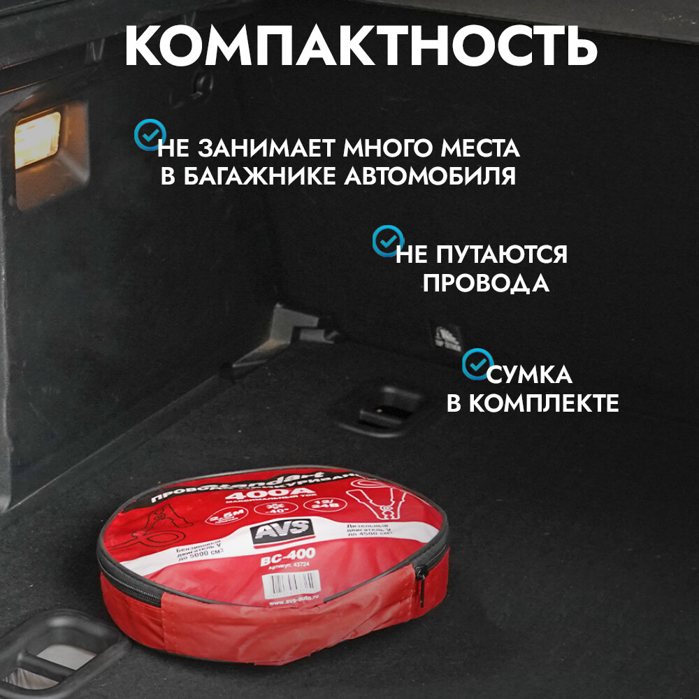 Ниже Вы можете прочитать отзывы на Провода прикуривания AVS Standart BC-400 (2,5 метра) 400А, ознакомится с подробными характеристиками, посмотреть интересные обзоры и фотографии на Провода прикуривания AVS Standart BC-400 (2,5 метра) 400А.