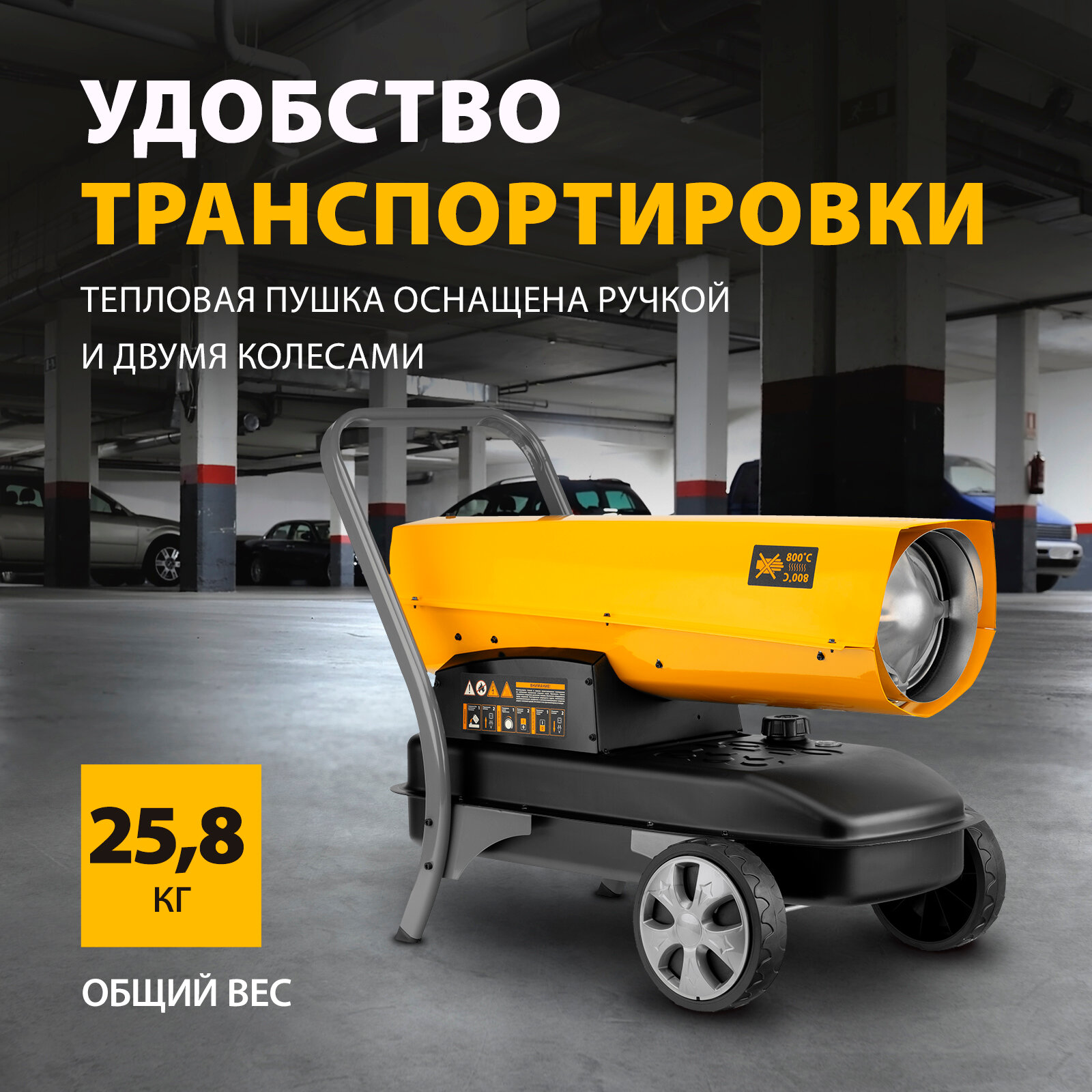 Купить Дизельная тепловая пушка 45 кВт 1000 м3/ч прямой нагрев электронный термостат Denzel