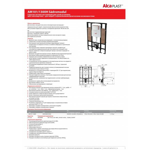 Инсталляция (монтажная рама), для сухой установки, для людей с ограниченными возмож., ALCA AM101/1300H интересное: