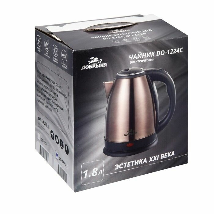 Чайник электрический "Добрыня" DO-1224C, металл, 1.8 л, 1800 Вт, коричневый