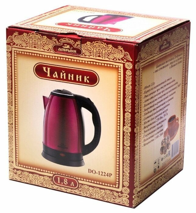 Чайник электрический добрыня DO-1224 1500-1800 Вт, 1,8 л, красный