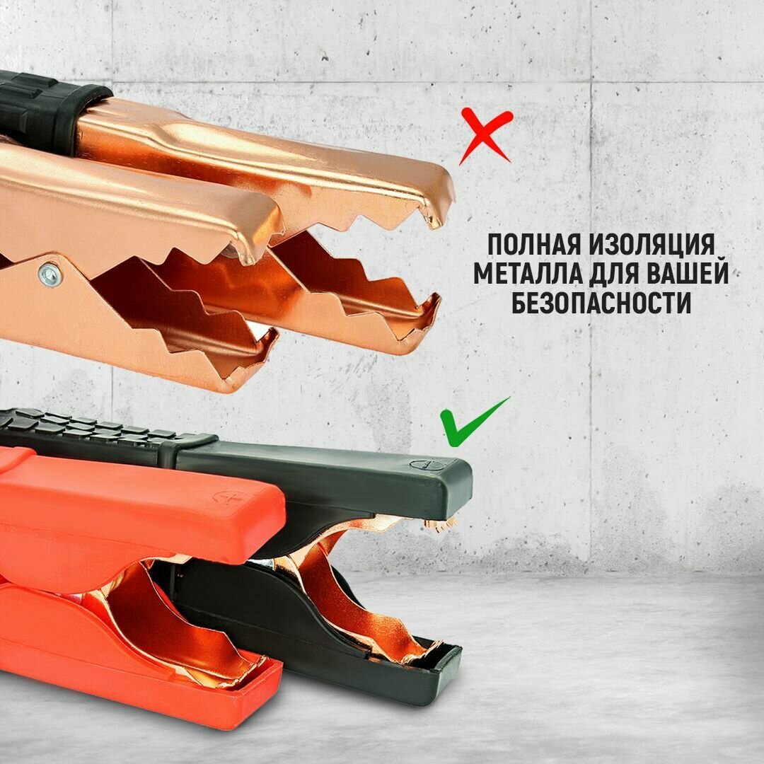 | Плюсы: | Длинные провода, хорошое толстое сечение провода, крепкие зажимы. |