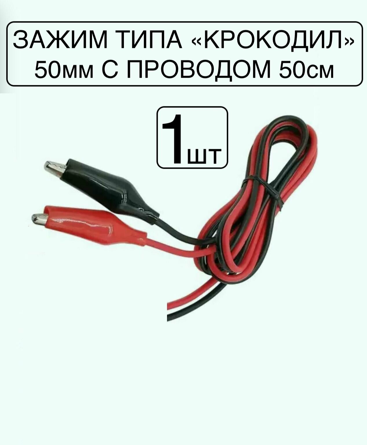 1 комплект! Зажим крокодил 50 мм в изоляции, красный и черный с проводом 50см Ток нагрузки до 10А / крокодилы на провода /на аккумулятор интересное: