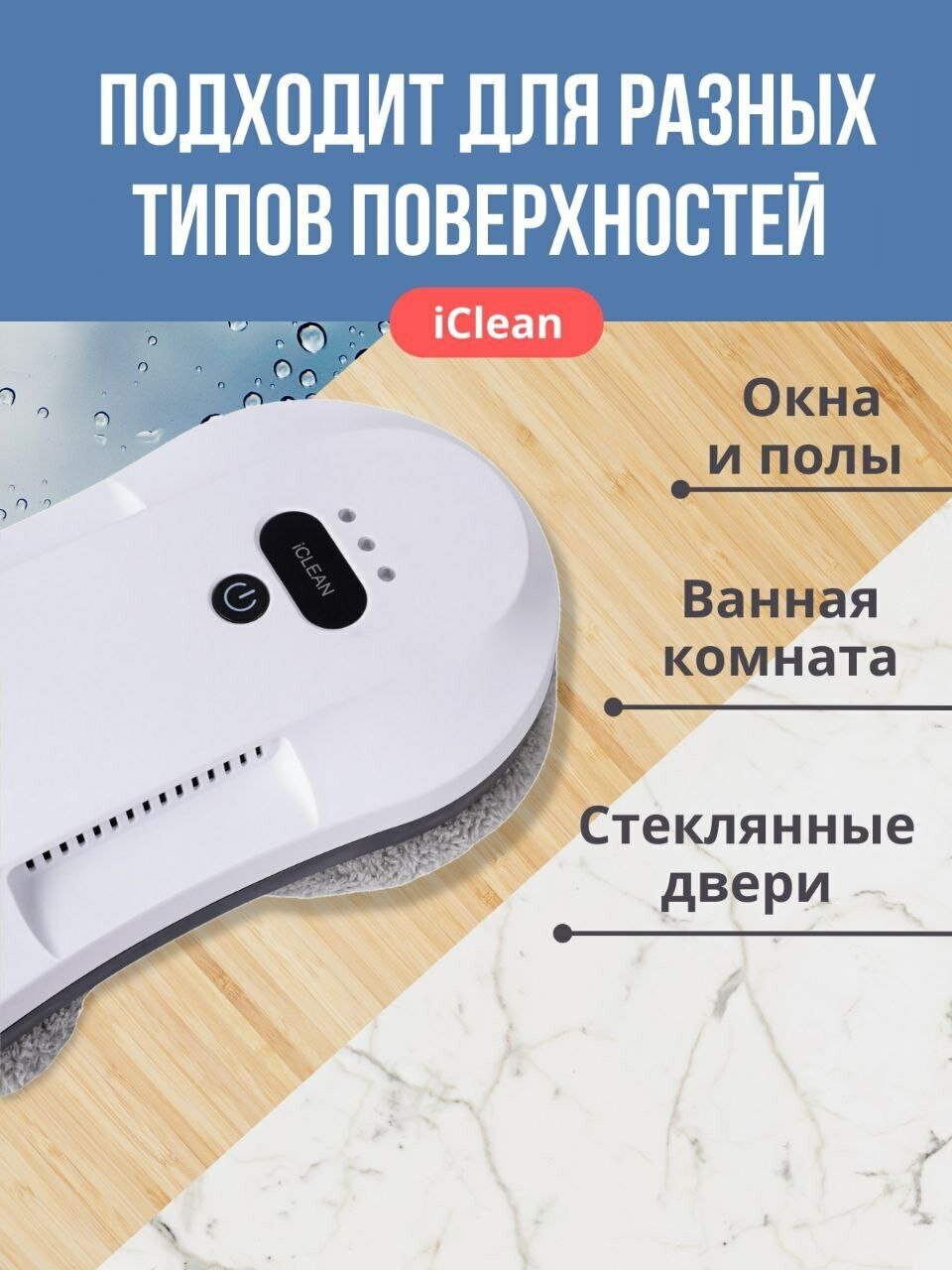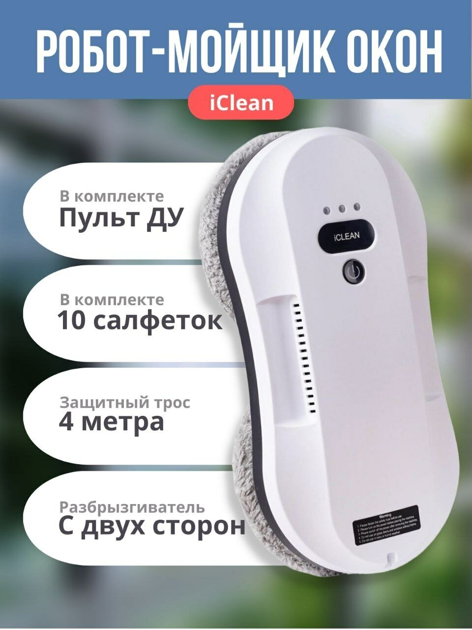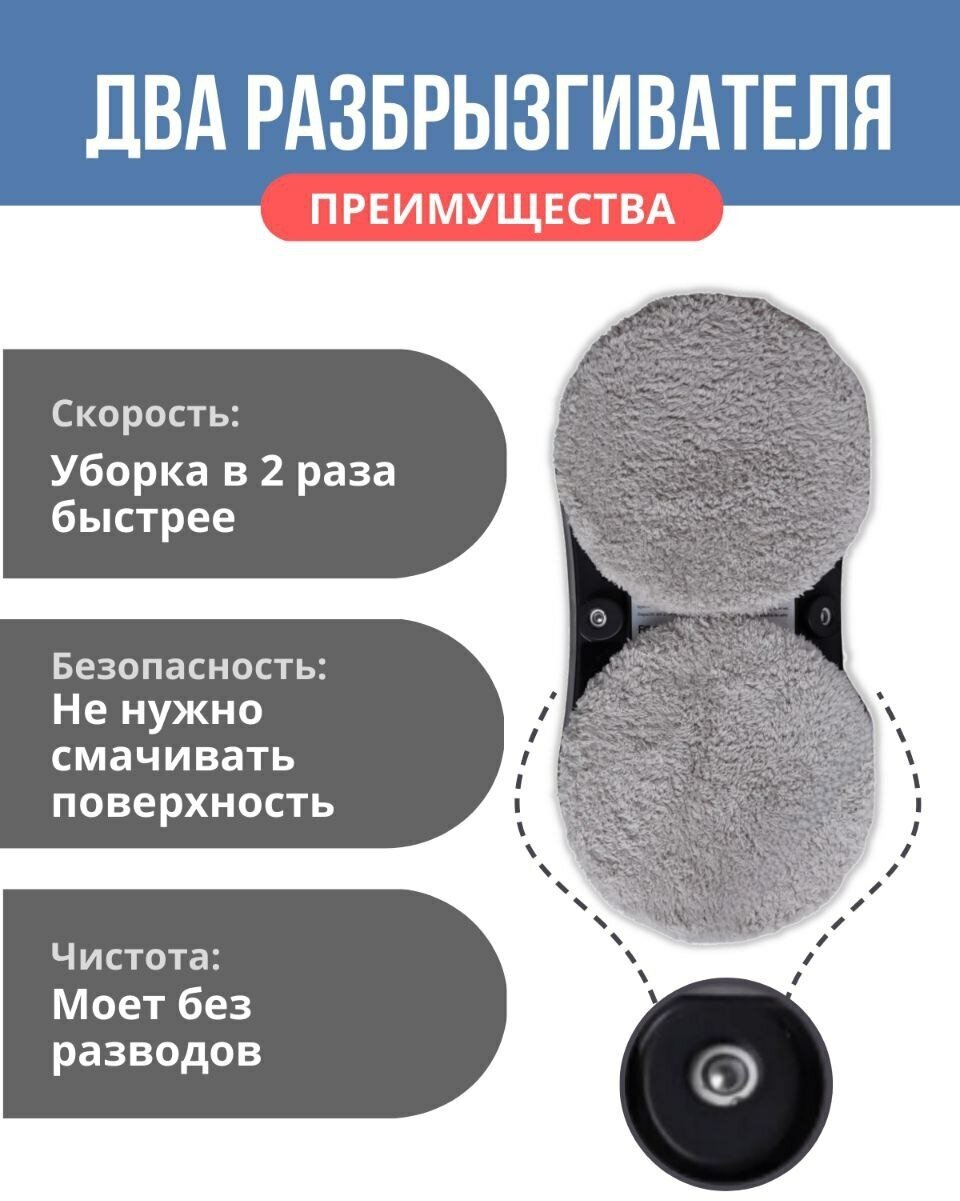 Робот для мойки окон с распылением стеклоочиститель для мытья зеркал, плитки iClean BOT HCR-19 со сменными салфетками из микрофибры (10 шт) для сухой и влажной уборки интересное: