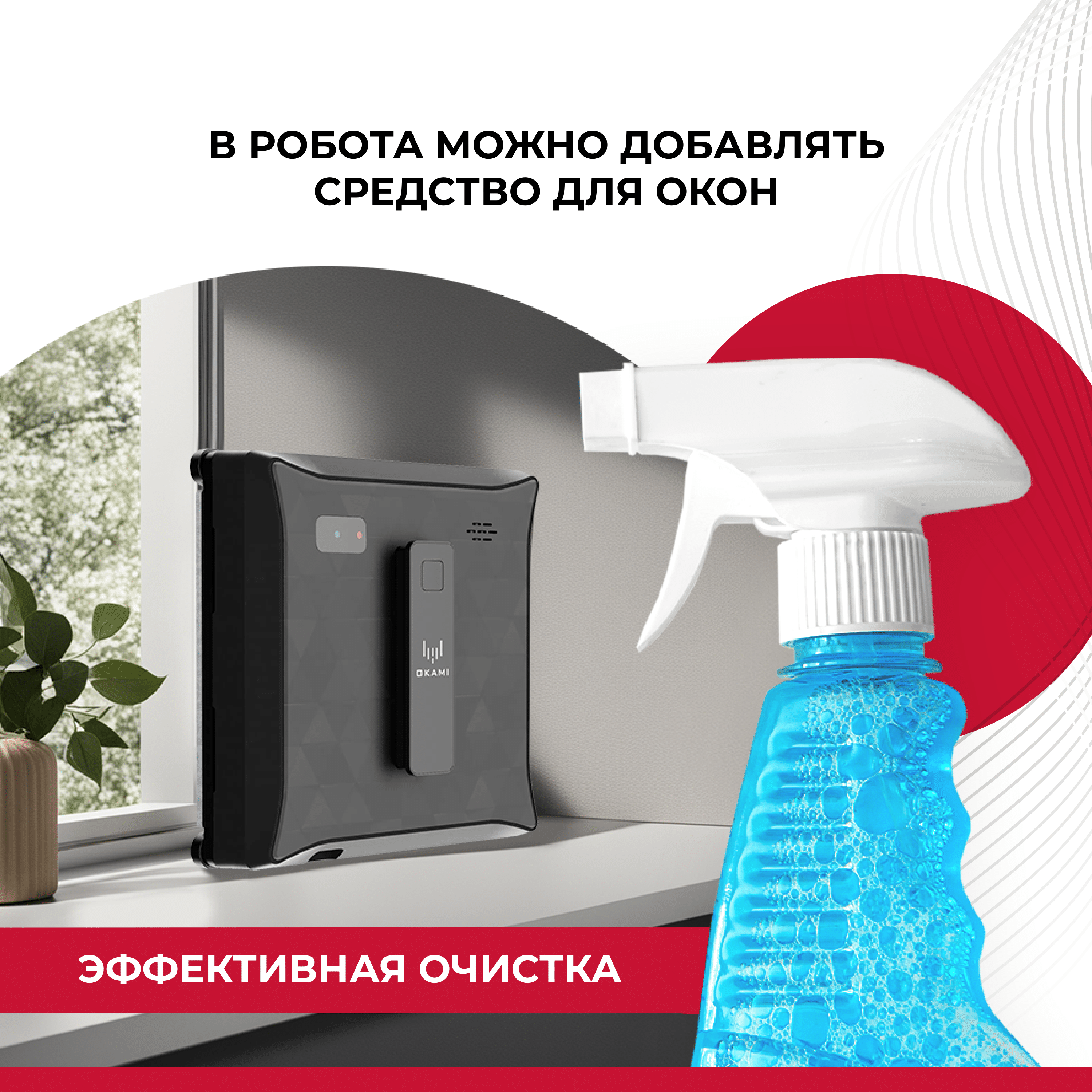 Робот мойщик окон Okami Q75, стеклоочиститель с распылением, робот для мойки окон квадратный интересное: