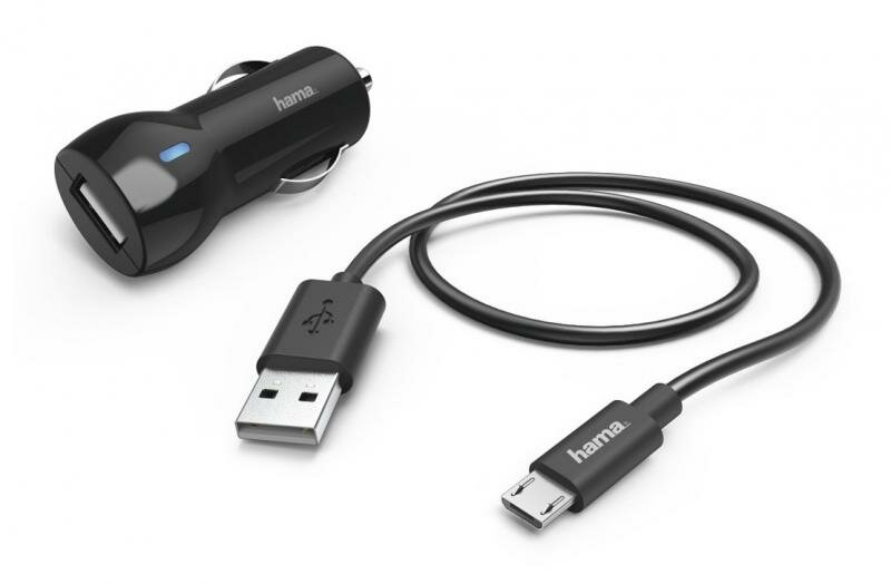 Автомобильное зарядное устройство HAMA H-183246, USB, microUSB, 2.4A, черный [00183246]