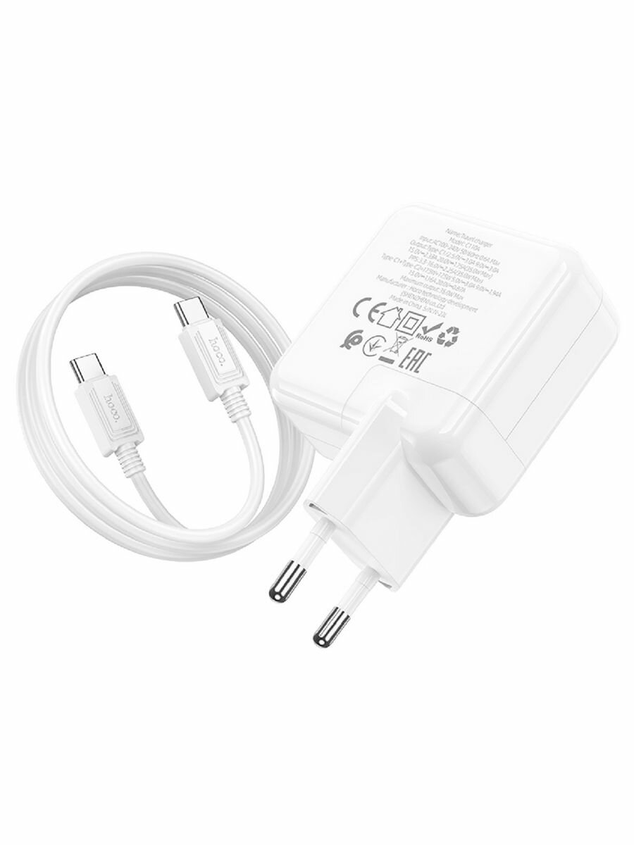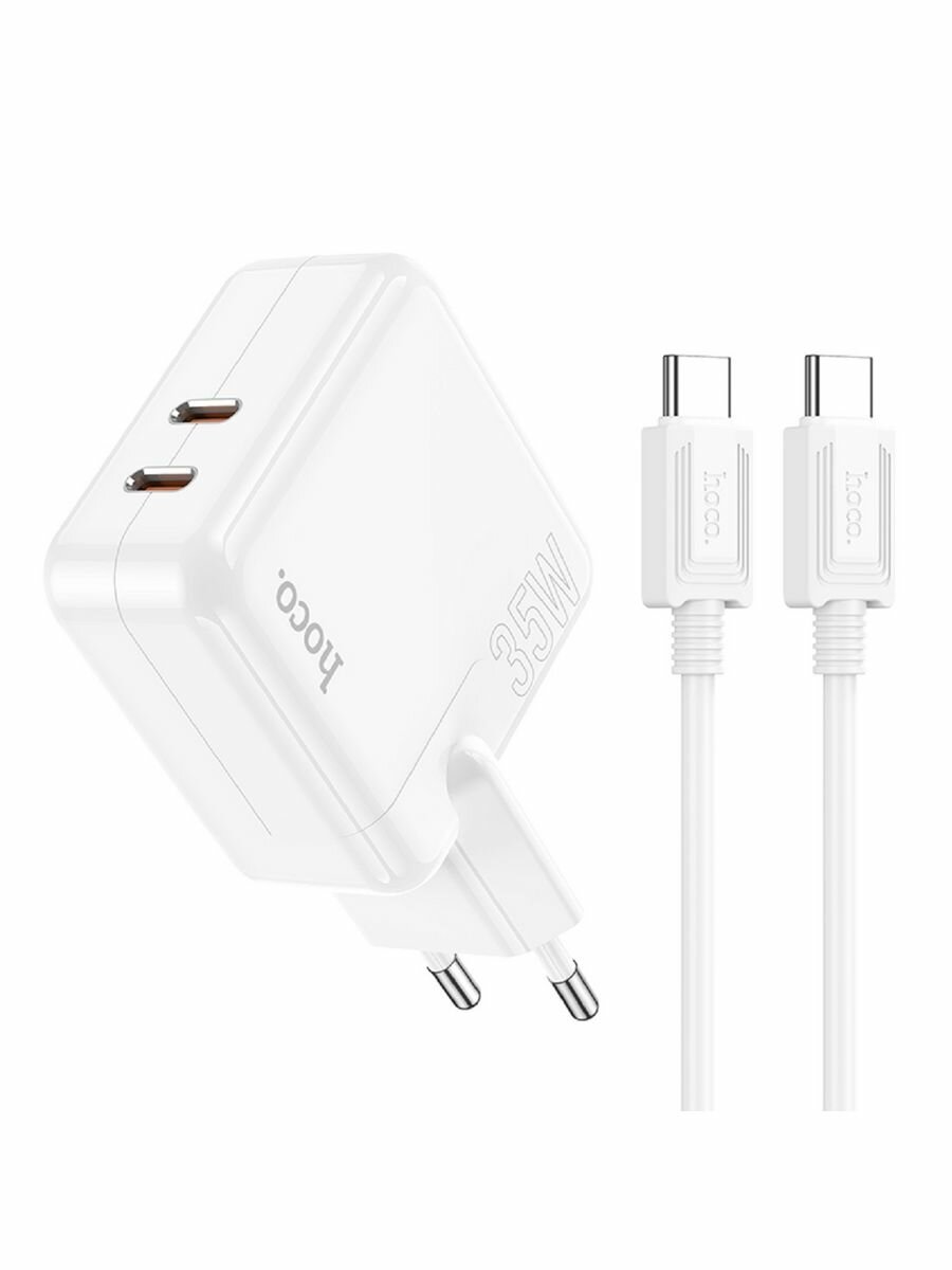Сетевое зарядное устройство HOCO C110A Lucky 2xUSB-C с Кабелем Type-C - Lightning, 35W, белый