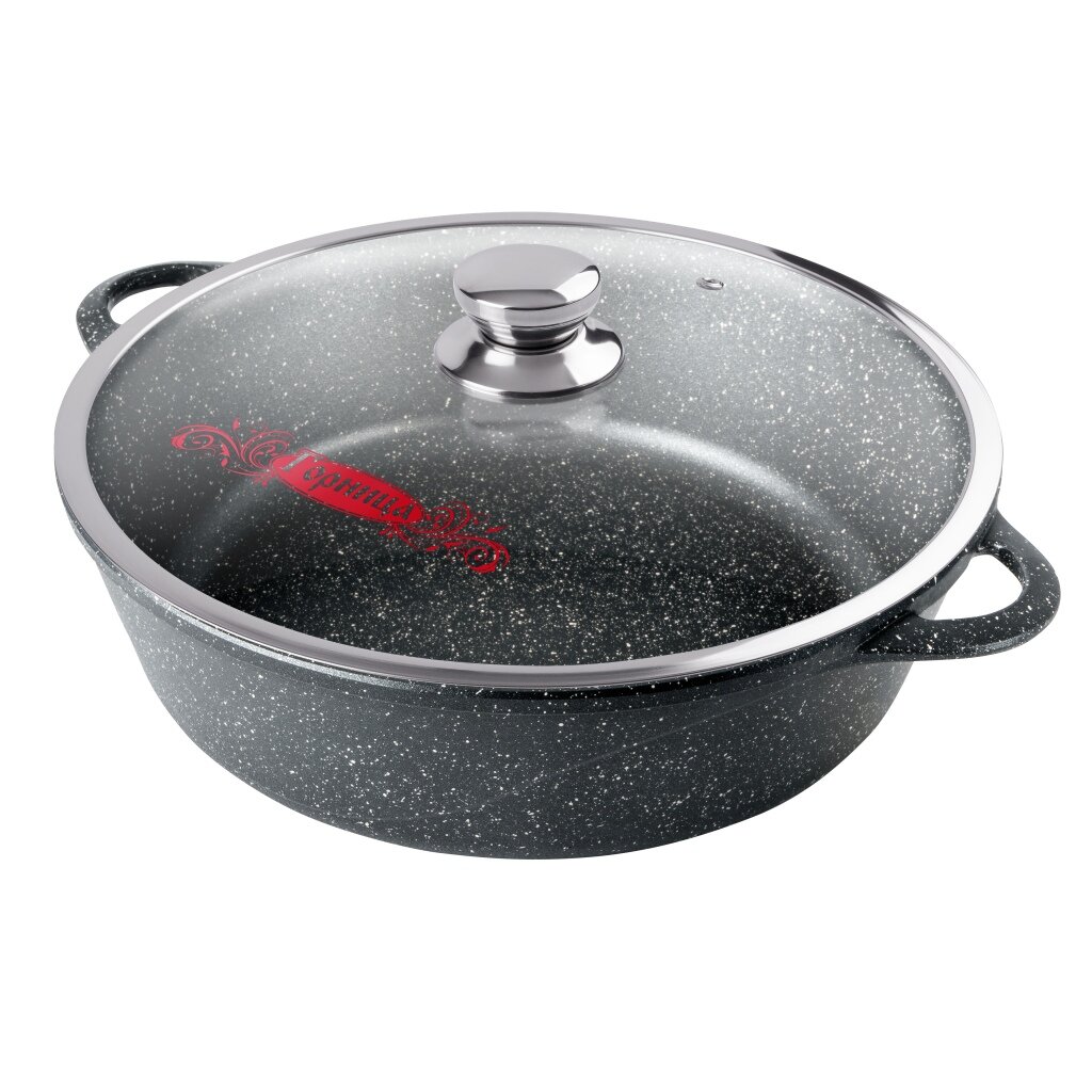 Жаровня антипригарная литая 28/9,5см 4л со стеклянной крышкой Гранит ТМ Горница