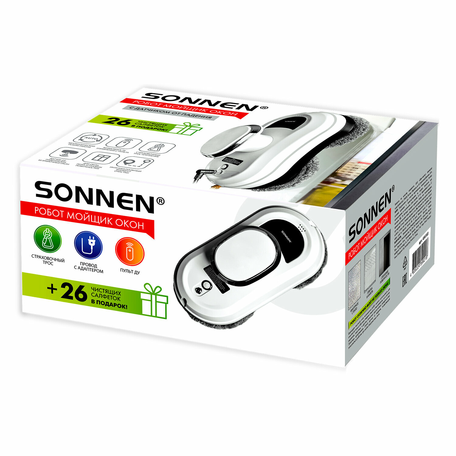 Купить Робот мойщик окон, стеклоочиститель автоматический SONNEN Tech RWC-121 UltraClear, датчик от падения, 26 салфеток, пульт ДУ, 456183