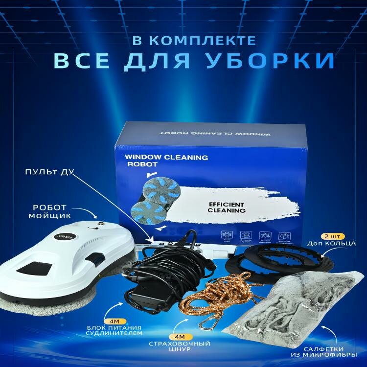 | Комплектация | адаптер питания / моющая тряпка / пульт ДУ / страховочный шнур / удлинитель сетевого шнура / чистящее средство |