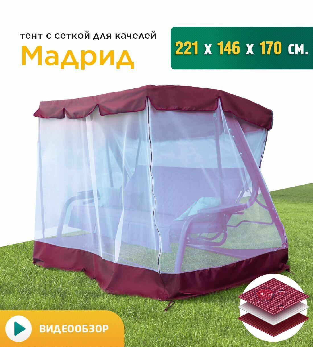 СохранитьТент с сеткой для качелей Мадрид (221х146х170 см) бордовый интересное: