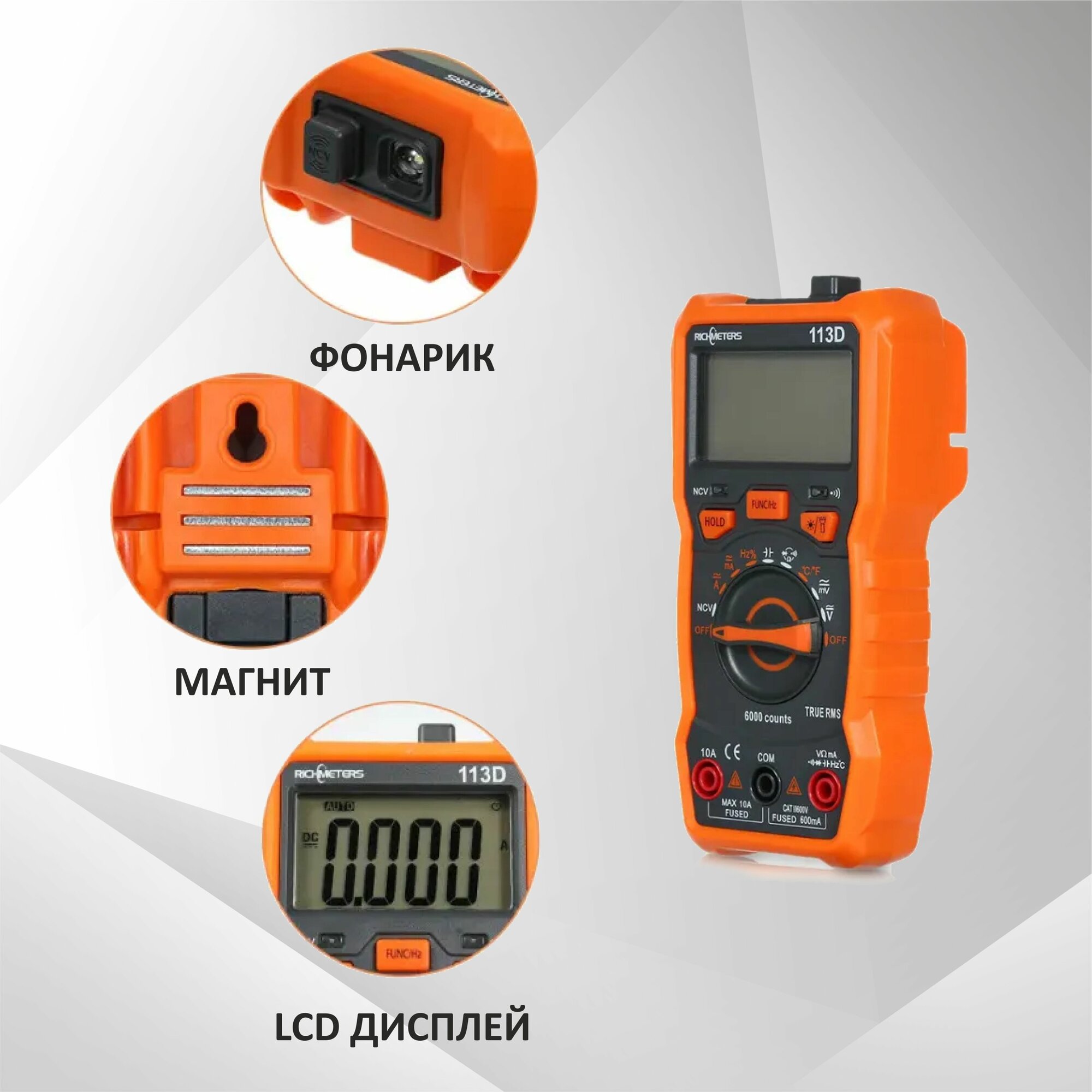 RICHMETERS RM113A NCV Цифровой мультиметр Измеритель напряжения с магнитным всасывающим фонариком