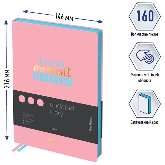 Ежедневник недатированный Berlingo А5, 160 листов, Haze, розовый срез, мятный, с рисунком UD2_95502