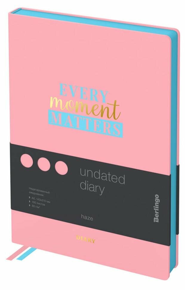 СохранитьЕжедневник недатированный Berlingo А5, 160 листов, Haze, голубой срез, розовый, с рисунком интересное: