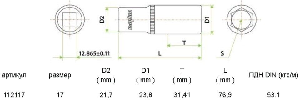Головка торцевая глубокая 1/2"DR 17 мм 112117