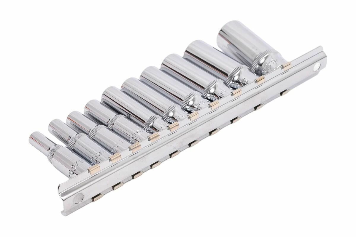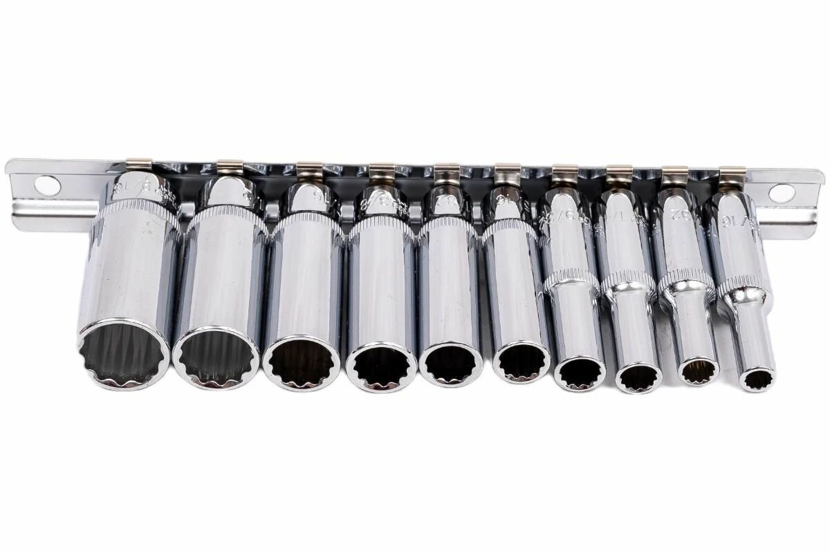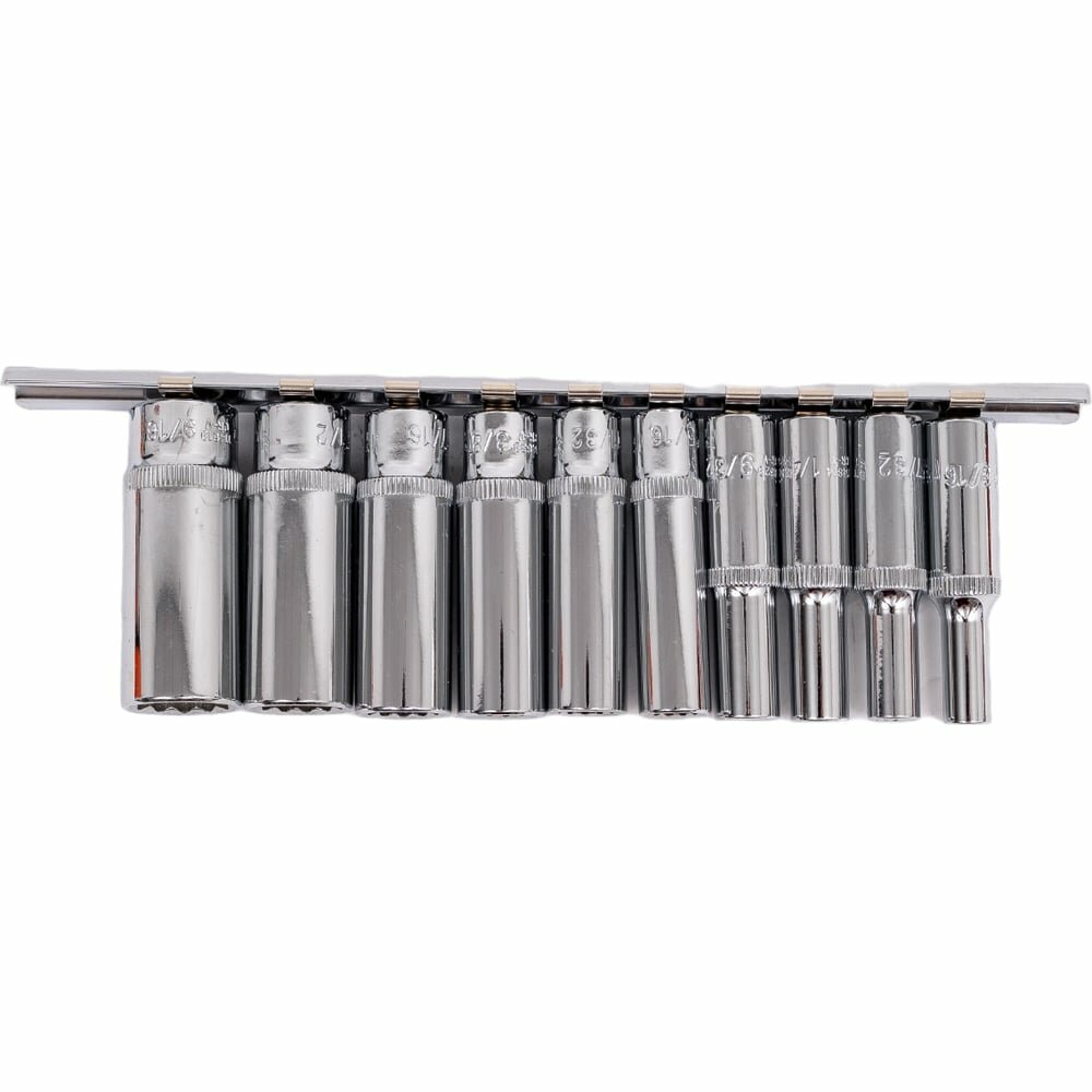 914910 Набор торцевых 12-гранных глубоких головок 1/4"DR, SAE 3/16”-9/16”, 10 предметов на держателе.