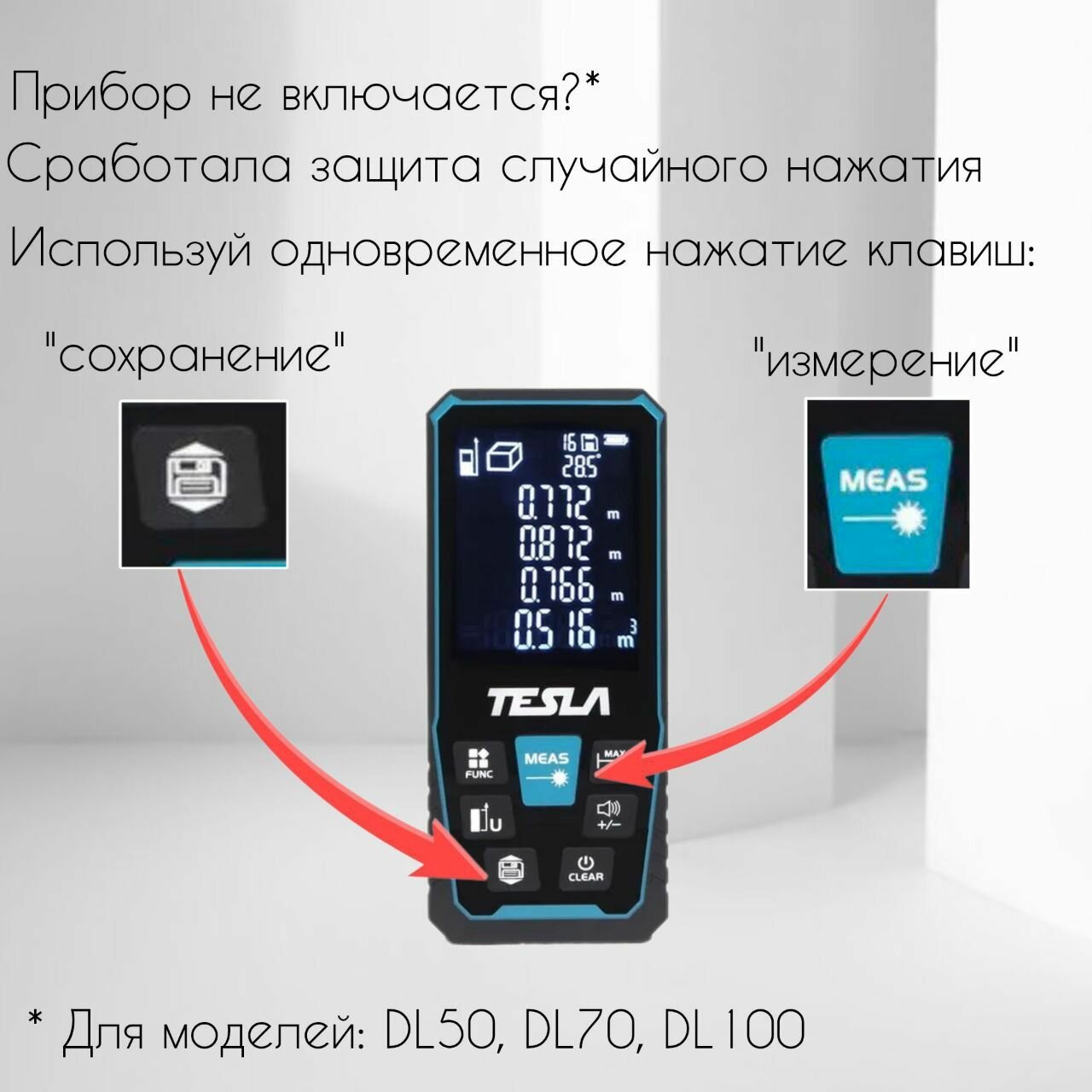Лазерный дальномер TESLA DL50 дальность 50 метров, точность 2мм