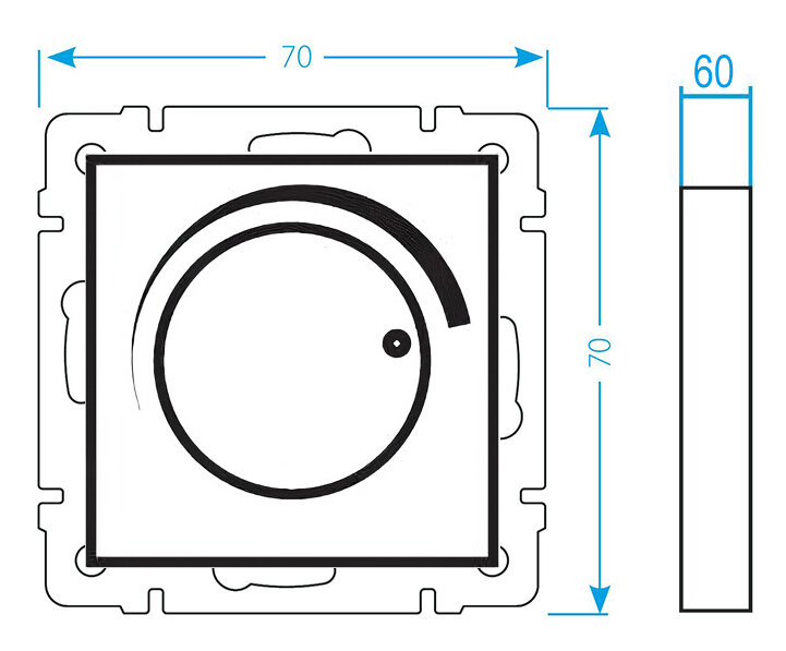 Имеет чёткие положения минимума и максимума, и ручка не прокручивается, как у Schnider Electric Blanca, т.к. стержень регулятора имеет D-образный профиль. |