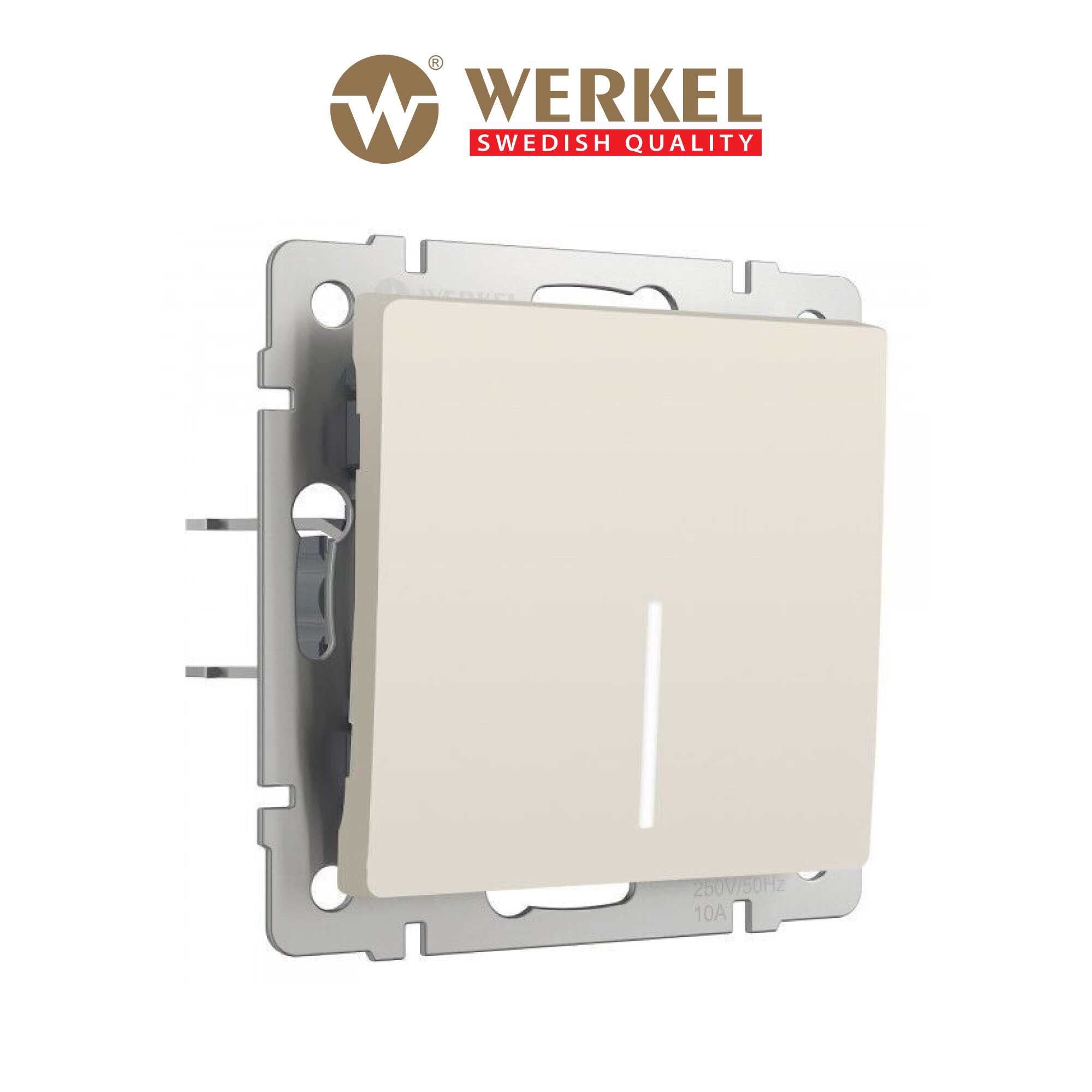 Выключатель встраиваемый одноклавишный проходной с подсветкой WERKEL WL03-SW-1G-2W-LED / W1112103 слоновая кость
