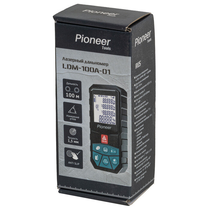 Лазерный дальномер Pioneer LDM-100A-01, до 100 метров, со встроенным уровнем