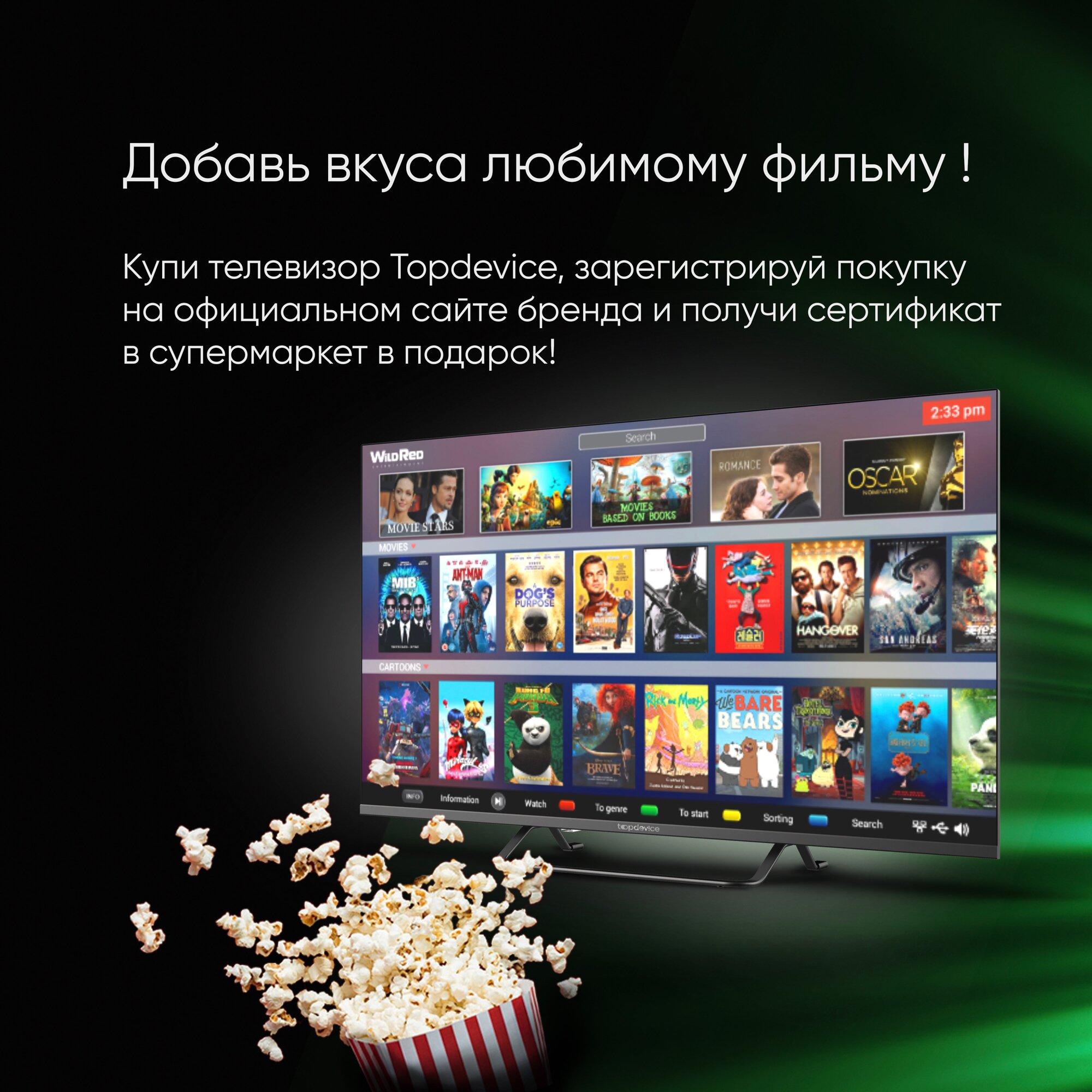 32" Телевизор Topdevice TV 32" SMART, HD 720p, Smart TV WildRed, черный