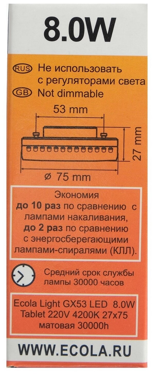 Лампочки светодиодные led Ecola GX53 8Вт 4200К естественно-белый свет 10 шт