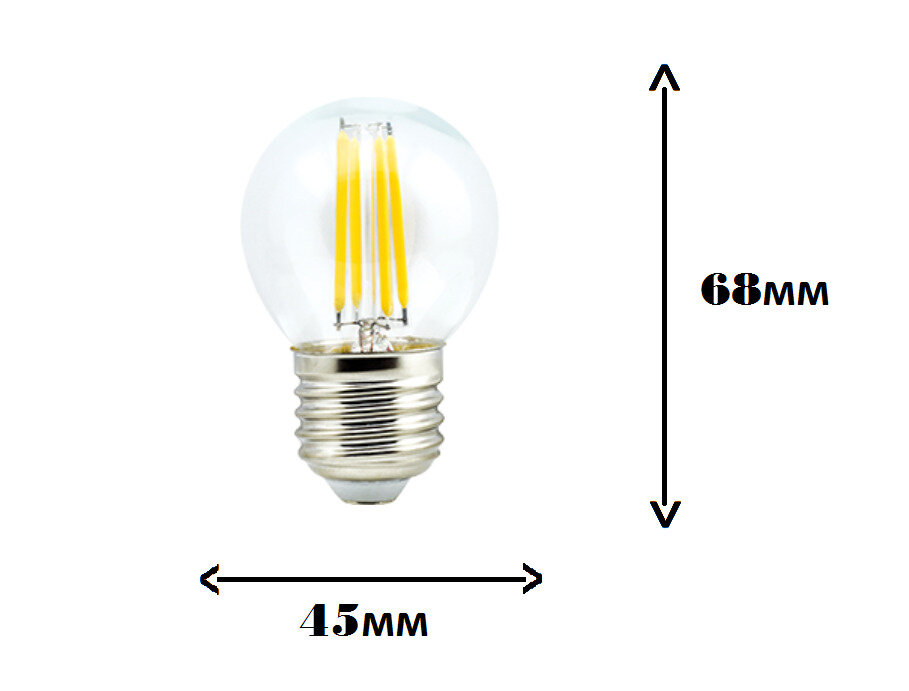 (10 шт.) Светодиодная лампочка Ecola шар G45 E27 6W 4000K 4K прозр. 68x45 филамент (нитевидная), 360° Premium N7PV60ELC Нейтральный белый. Цоколь E27