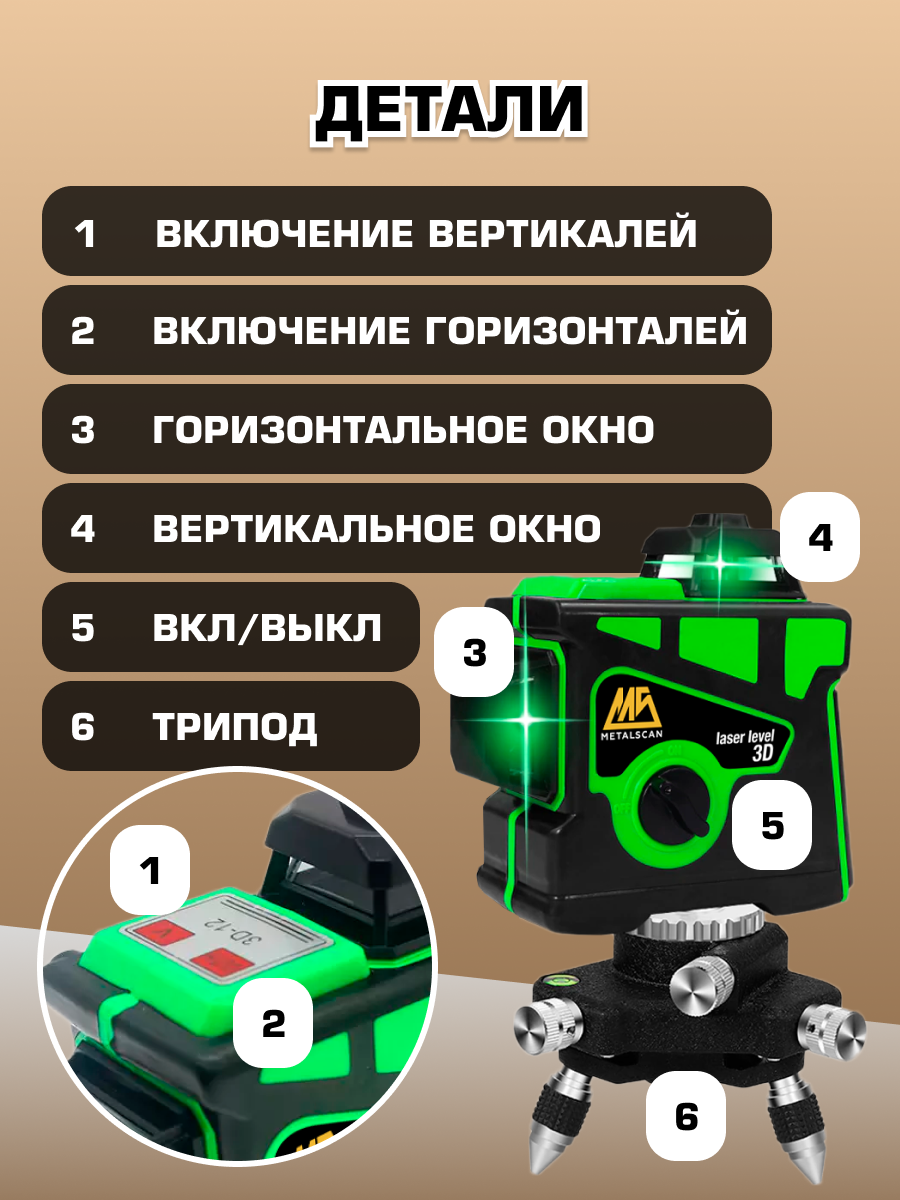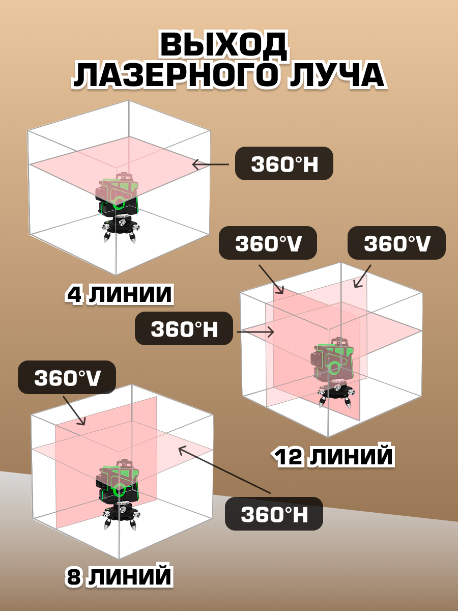 Лазерный уровень / нивелир 3D, Зеленый луч 3Д 20077 интересное: