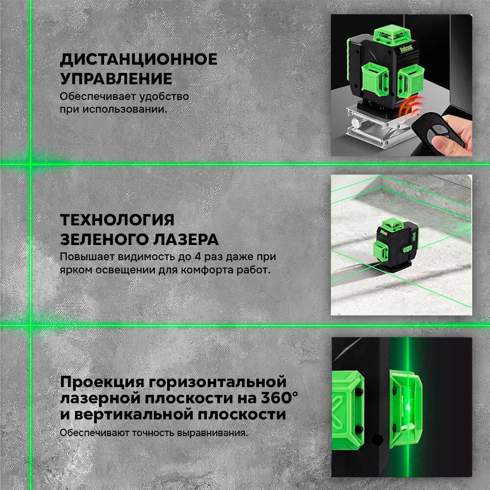 Лазерный уровень VNIISSOK Зеленый 16 лучей с пультом управления интересное: