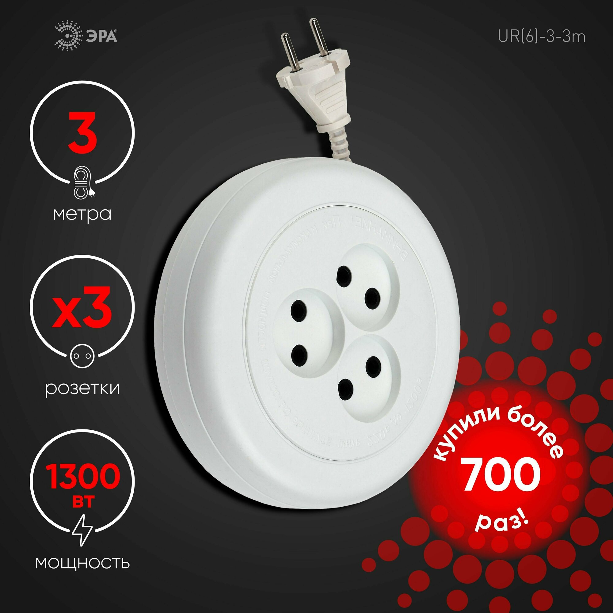 СохранитьУдлинитель UR(6)-3-3mУХ6-103 рулетка без заземл.,1300Вт, 3гн, 3м (520600) UR(6)-3-3m, ЭРА Б0035760 (1 шт.) интересное: