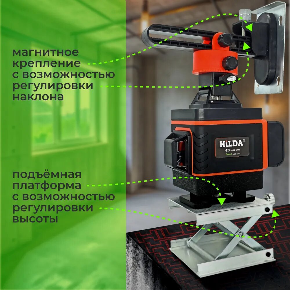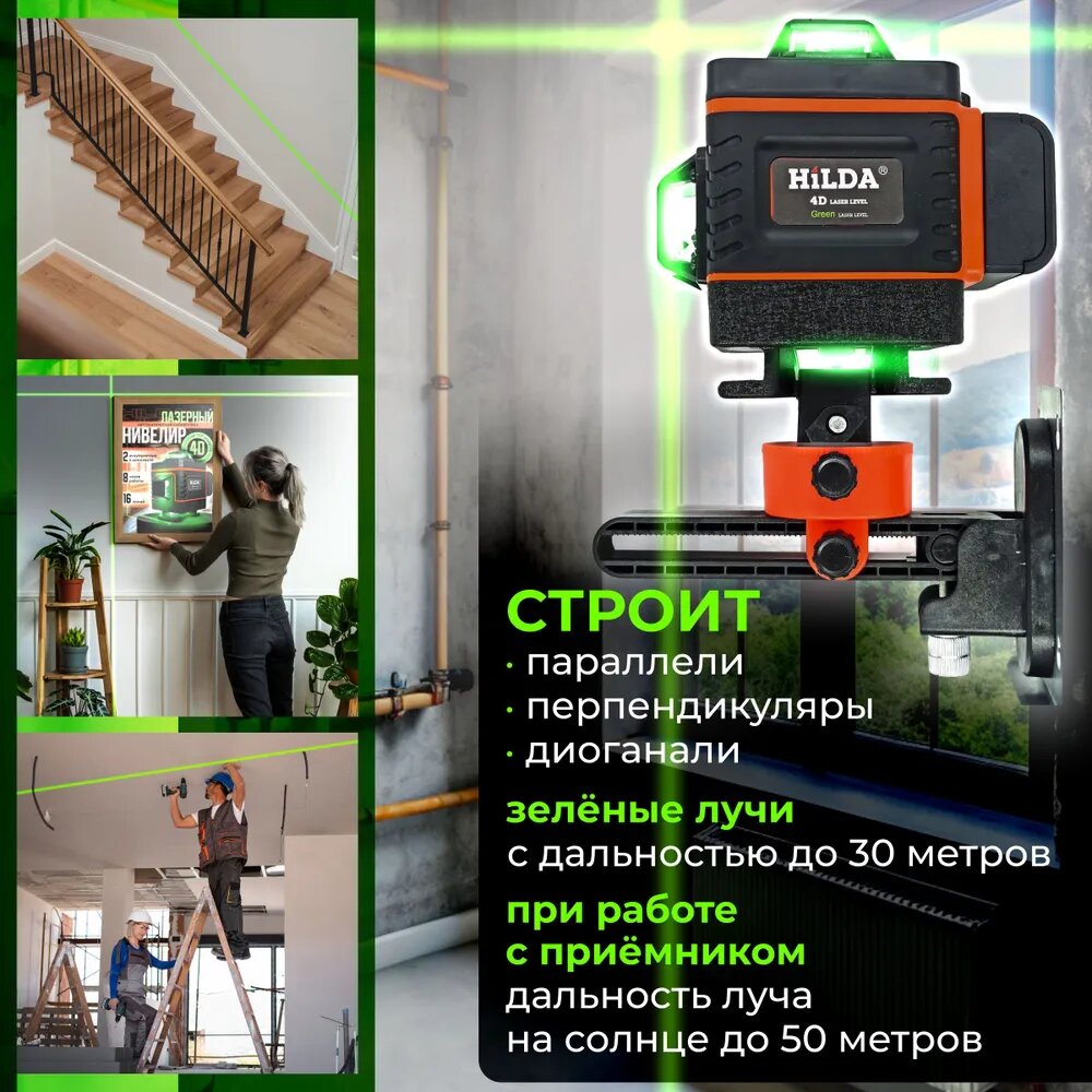 Лазерный уровень Hilda нивелир4d Green Laser 360 градусов интересное: