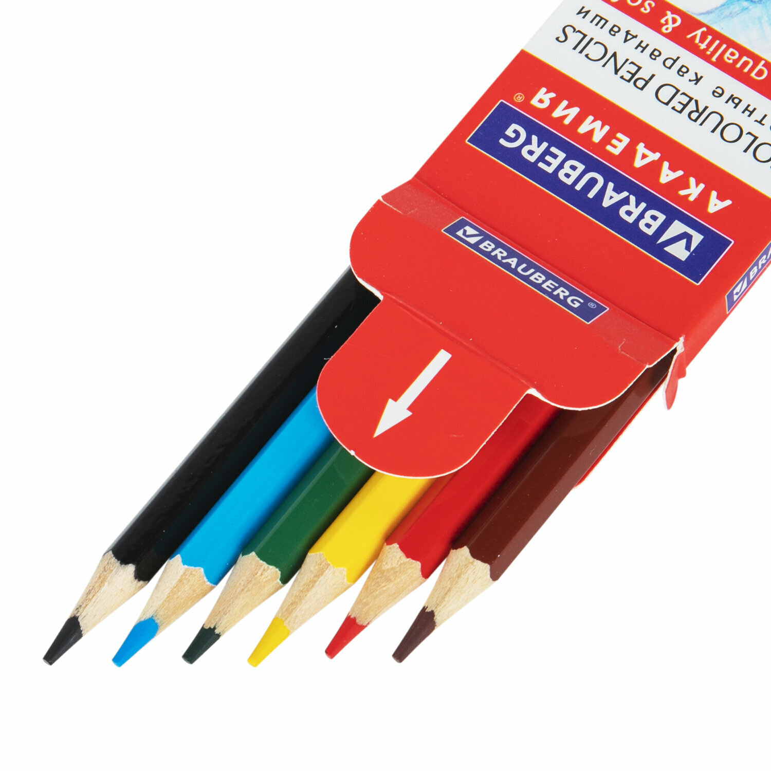 Купить Карандаши цветные мягкие BRAUBERG академия, 6 цветов, шестигранные, грифель 3 мм