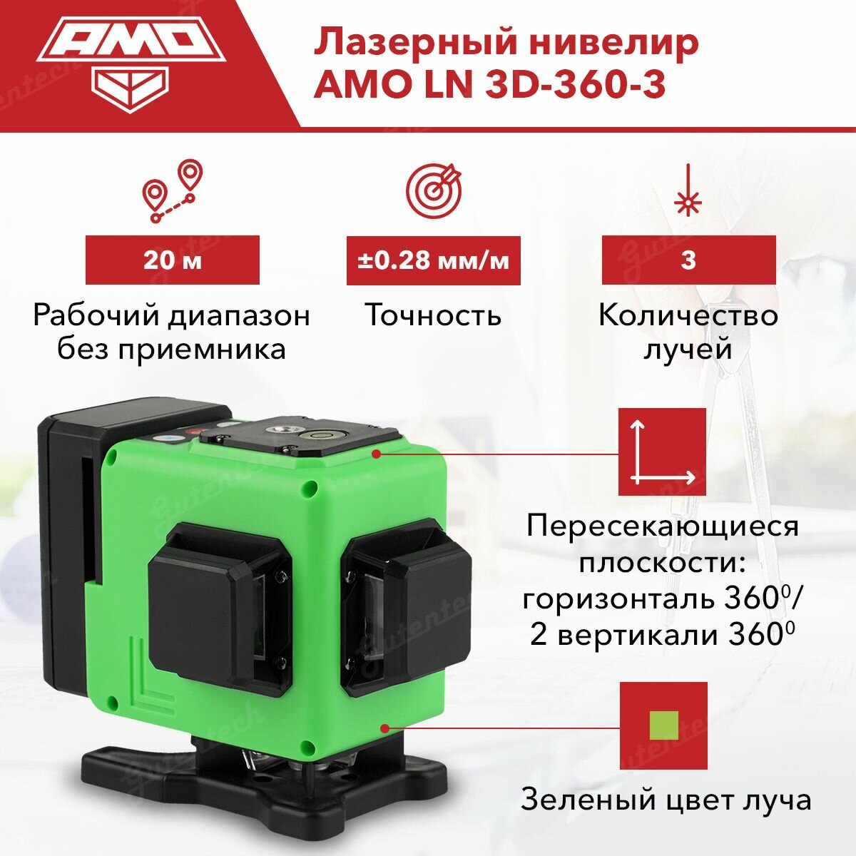Лазерный нивелир AMO LN 3D-360-3 851681 интересное: