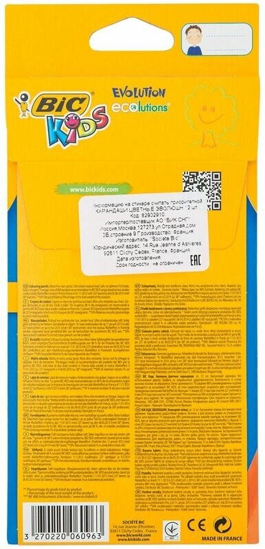 Карандаши 12 цветов BIC Kids Evolution ECOlutions, детские, ударопрочные, пластиковые