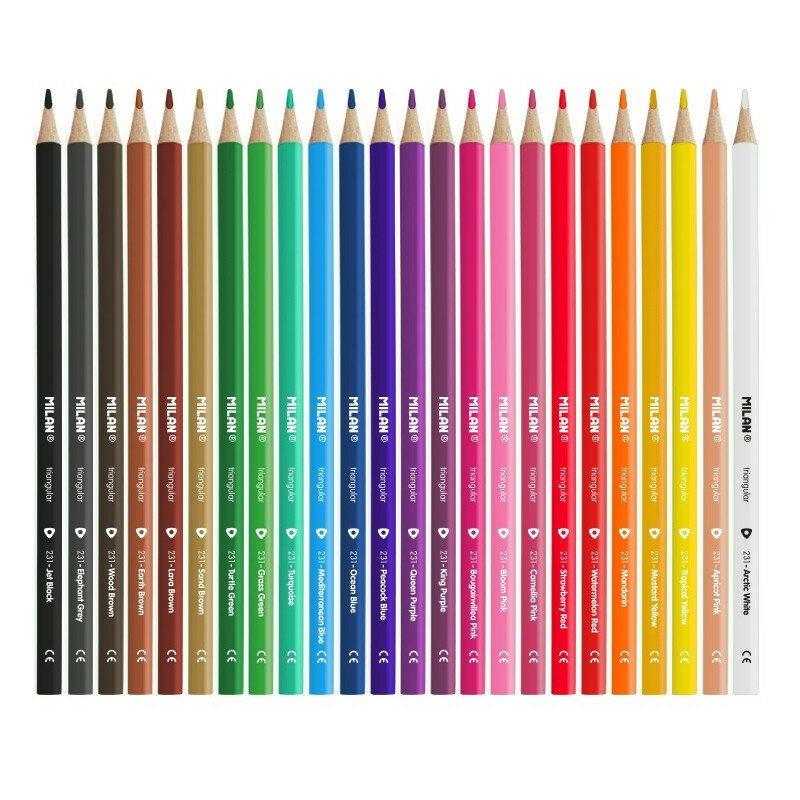 Карандаши цветные Milan, трехгранные, толщина грифеля 2,9 мм, набор 24 цвета
