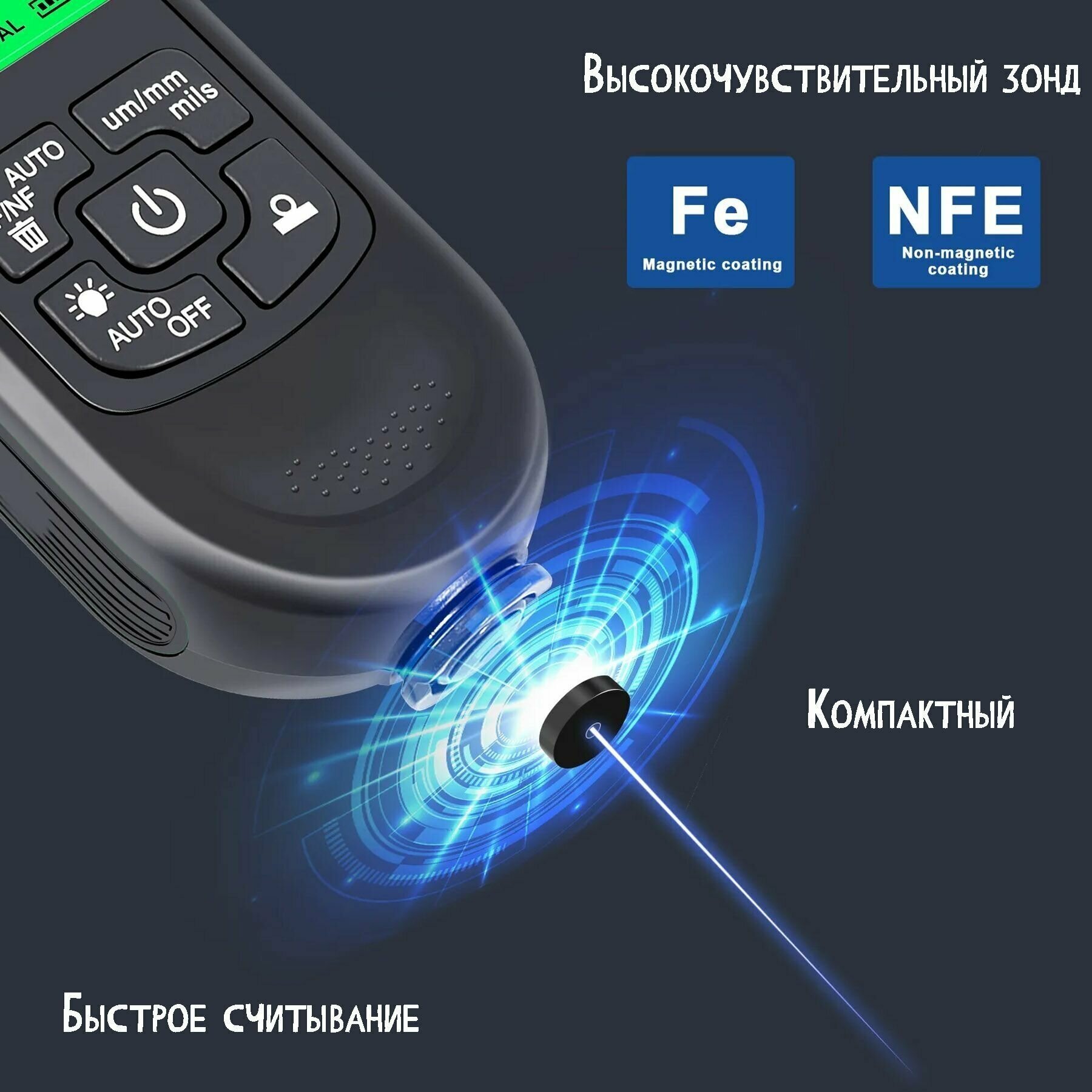 iCarTool Толщиномер лакокрасочных покрытий Fe/NFe IC-T150