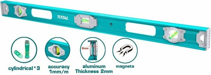 Уровень алюминиевый строительный рельс 100см, магнитный TOTAL интересное: