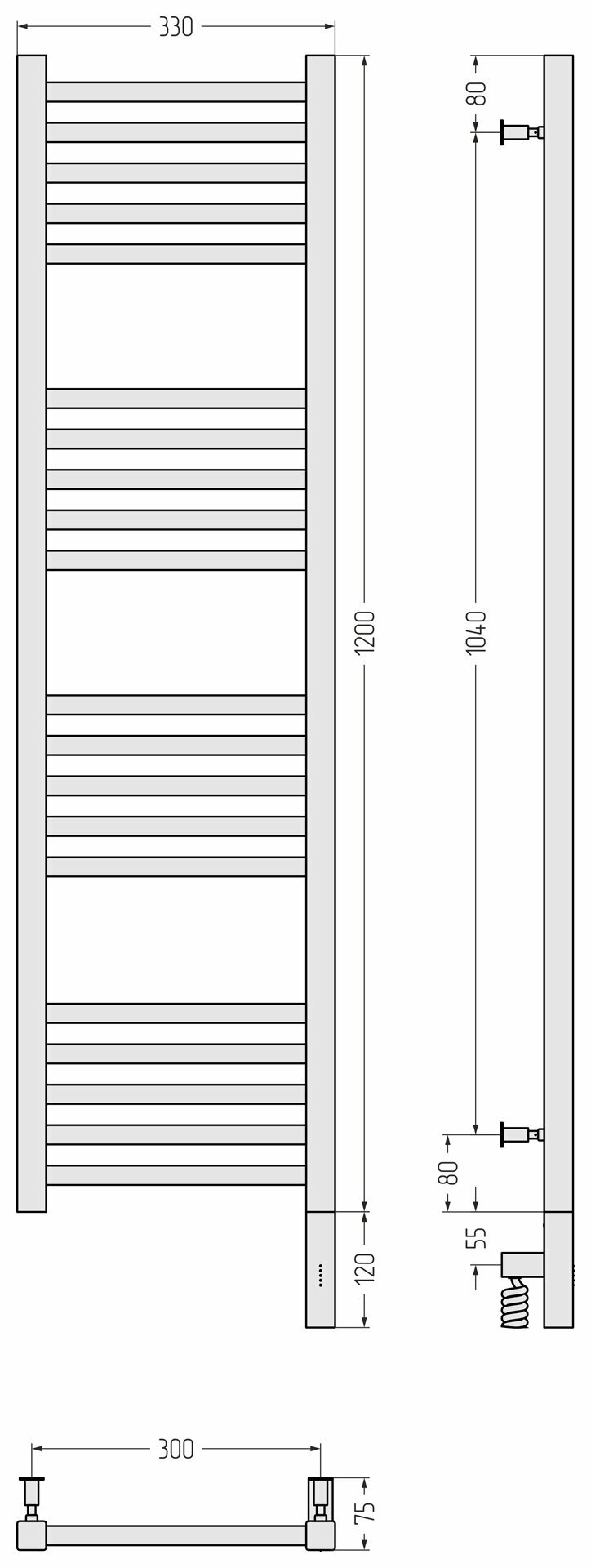 Полотенцесушитель электрический Сунержа Модус 3.0 1200x300 МЭМ правый Без покрытия 00-5701-1230