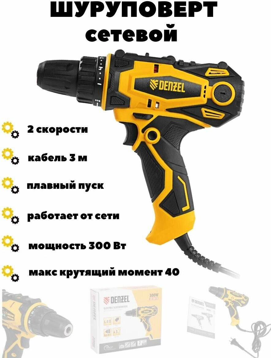 DENZEL 26211 Дрель-шуруповерт сетевая ударная ISD-300-13 Denzel